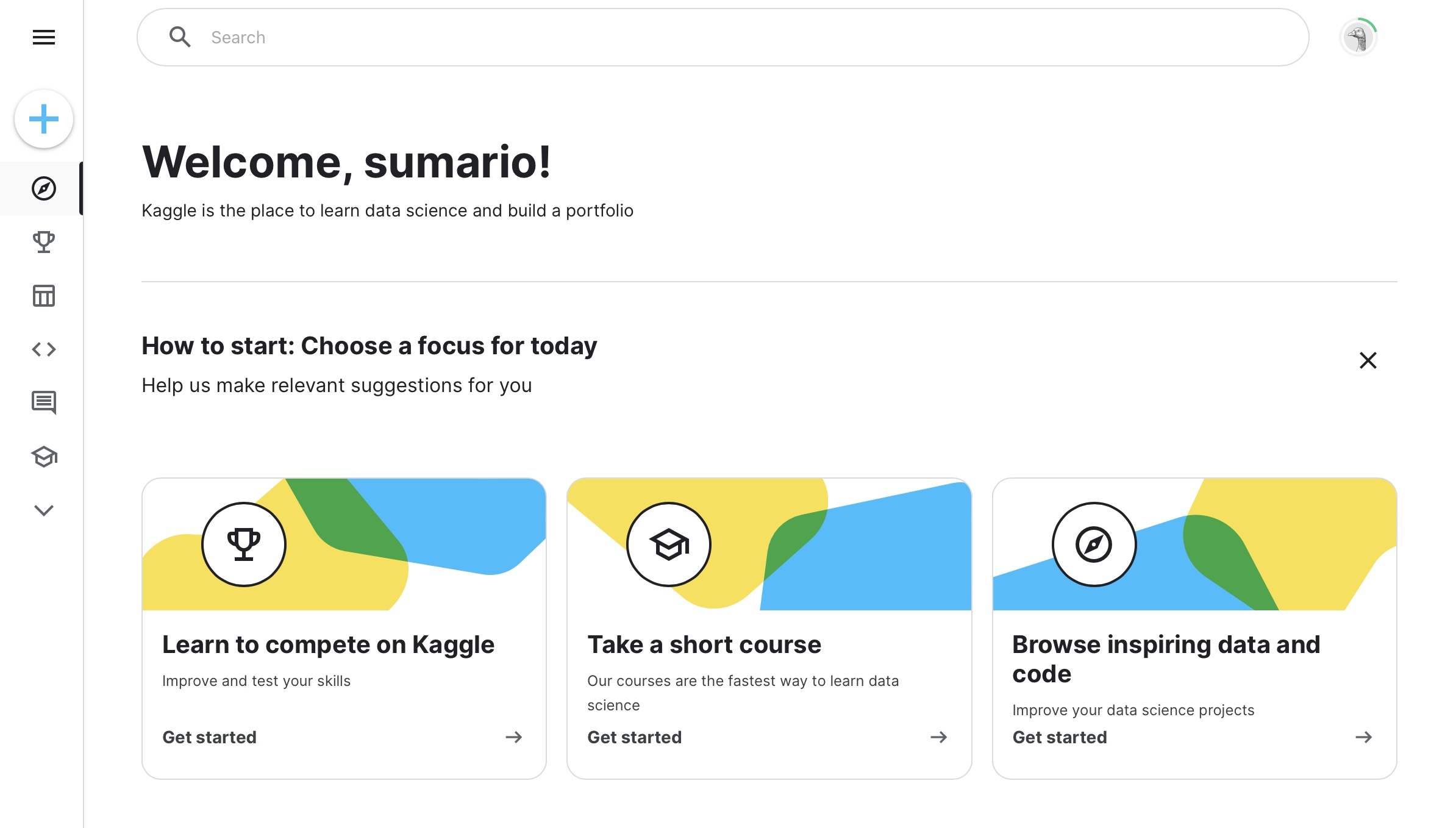 그래서 일단은 data specialist 아마추어로 활동하기로 마음을 먹었고 찾아보던 중 Kaggle이 portfolio를 쌓기에 딱 내가 원하는 플랫폼이었다.